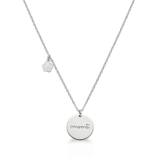 Um gesto simples, com significado infinito. Colar em prata 925 com medalha “mamã” e uma delicada medalhinha de flor, perfeito para a mãe que está sempre presente.
