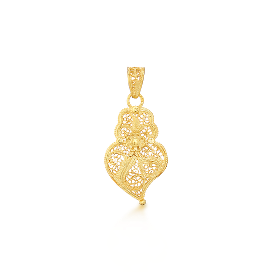 Medalha de filigrana em ouro de 19,2 quilates em forma de coração de Viana. Uma jóia intemporal produzida artesanalmente em Portugal.