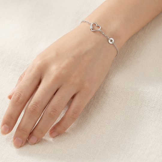 Pulseira em prata com coração aberto com cravação de zircónias. Um design leve e moderno, ideal para dar brilho ao dia a dia.